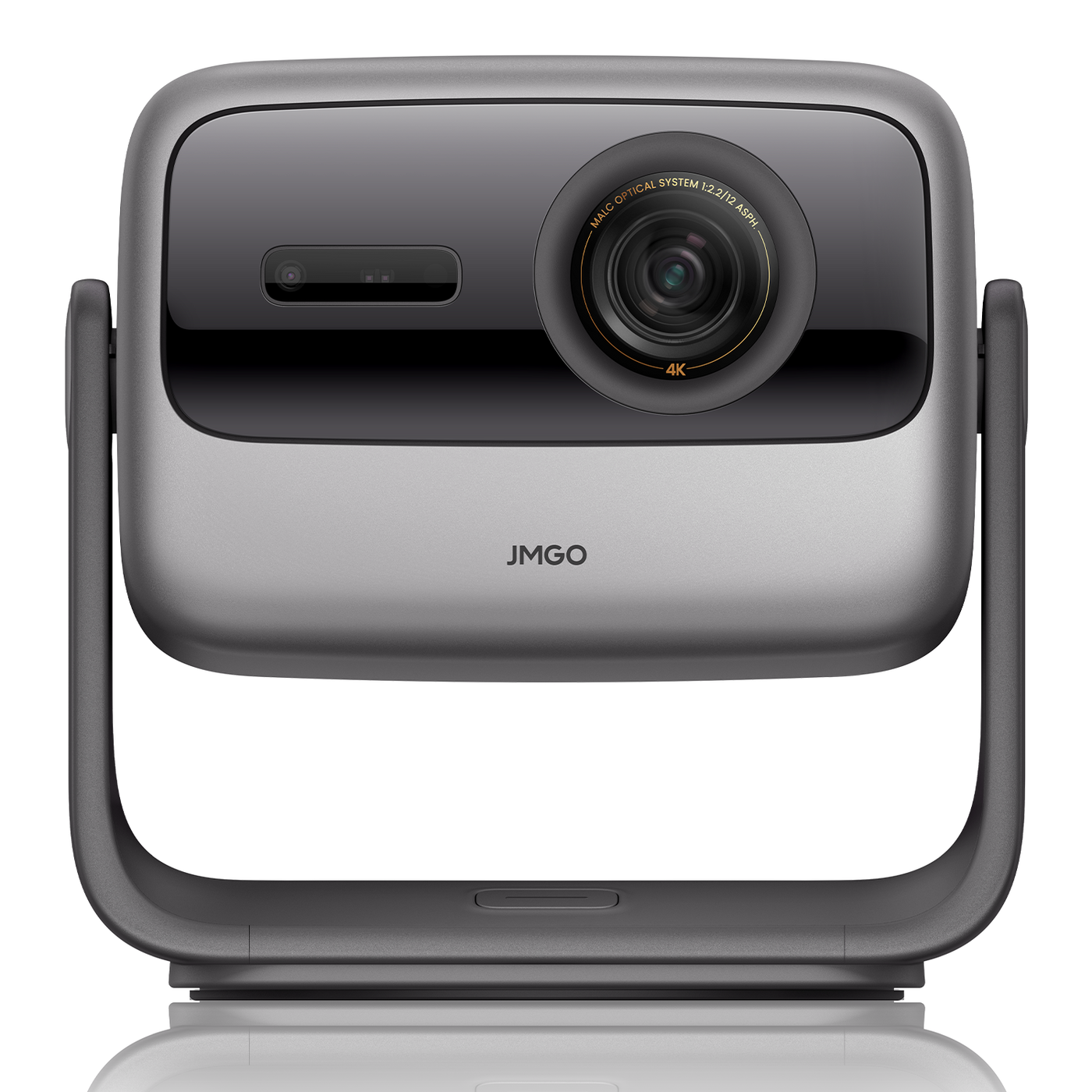 The JMGO N1S Ultimate sits on a gimbal stand for placement flexibility, with its Multi Adaptive System adjusting visuals for easy setupJMGO