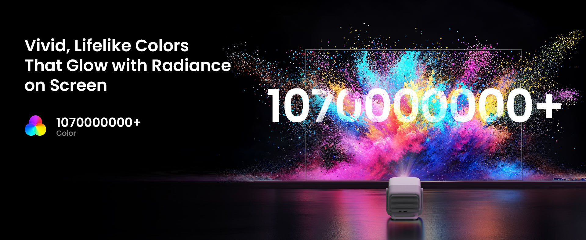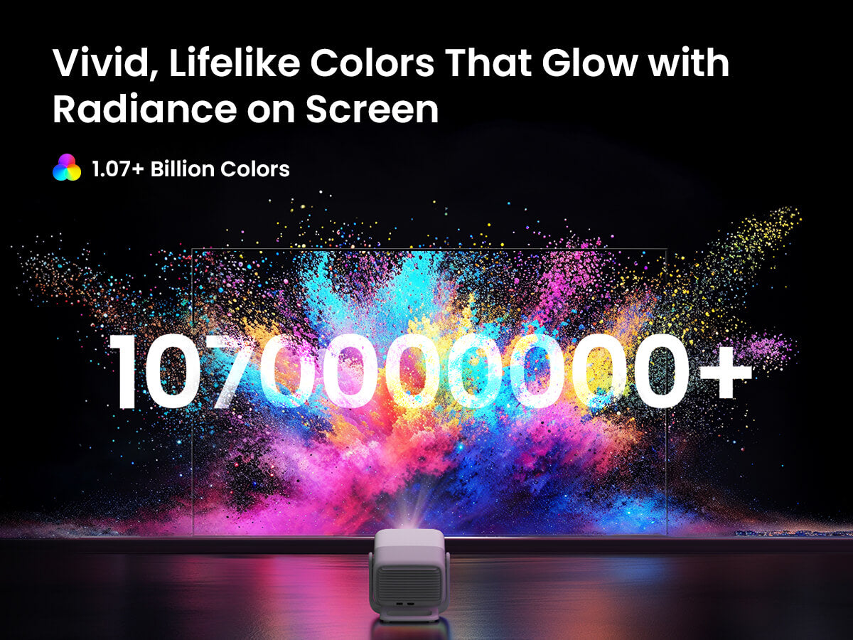 ● Flexible Gimbal for Instant Auto Focus: 127° rotatable gimbal enables effortless projection on any surface, with real-time autofocus, keystone correction, and smart eye protection for clear, safe, and versatile viewing anywhere.