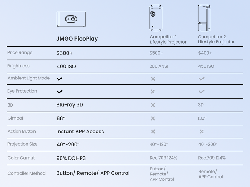 Immersive Visual Feast: Enjoy stunning visuals with 400 ISO Lumens brightness (PicoPlay: 400, PicoPlay+:450), 90% DCI-P3 color, and crisp 1080P resolution—up to a massive 200 inches.