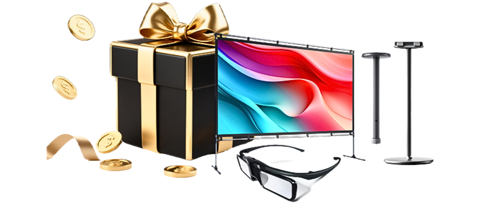 3D Glasses × 2 OR Ceiling Mount/ Floor Stand OR 100'' Portable Screen