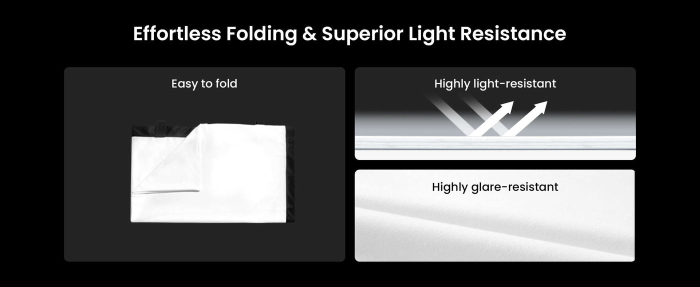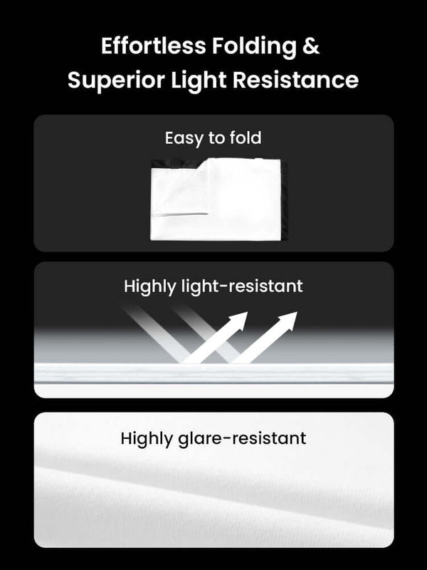 Durable & Versatile: Anti-wrinkle, light-resistant, and supports both front and rear projection.