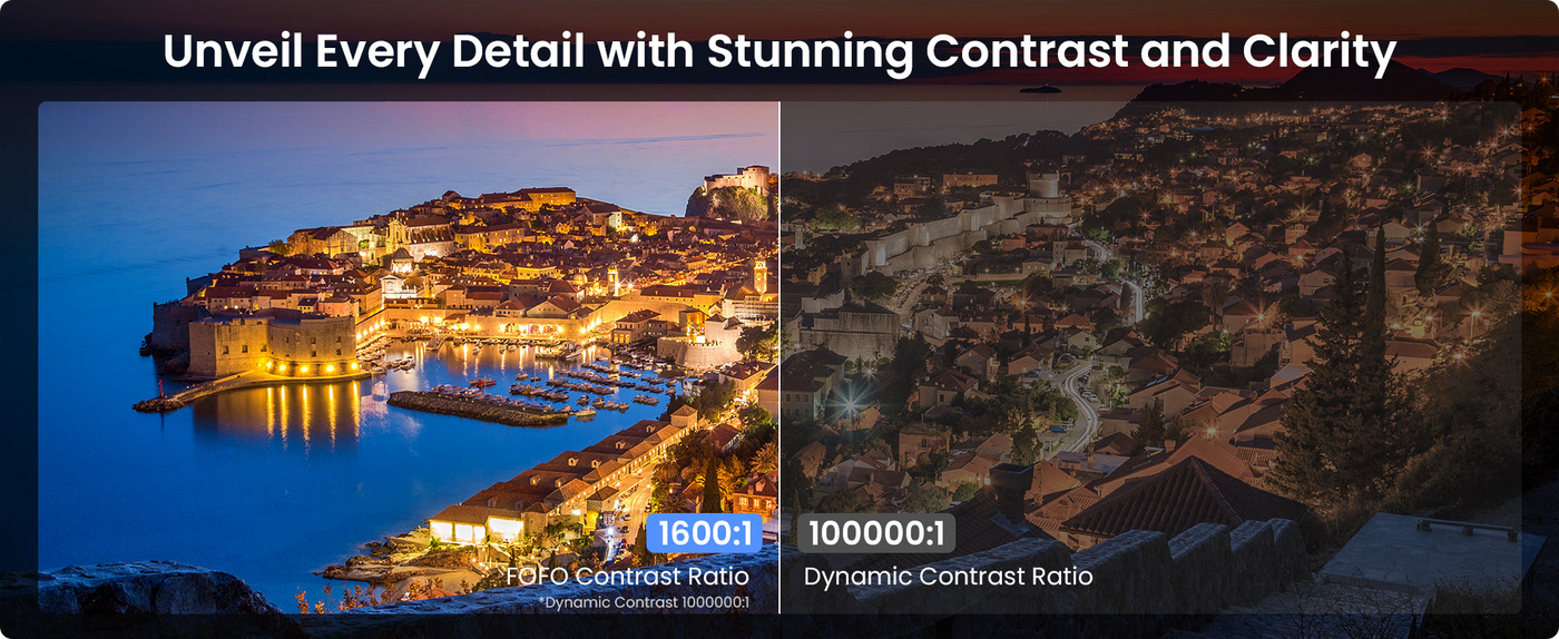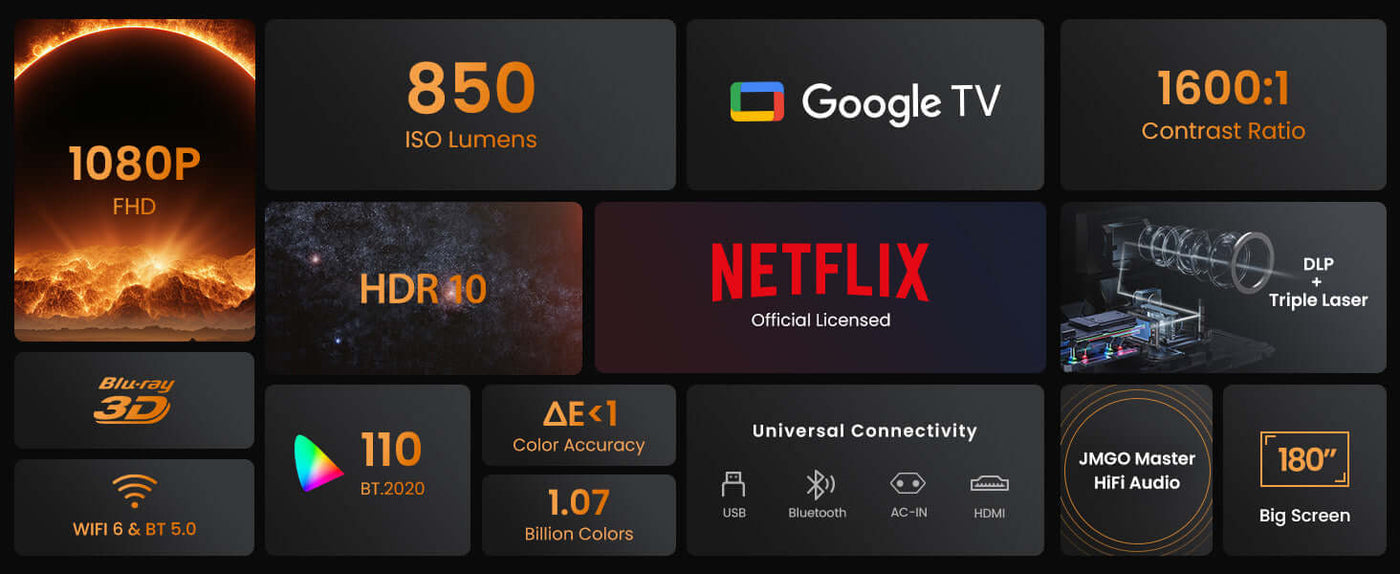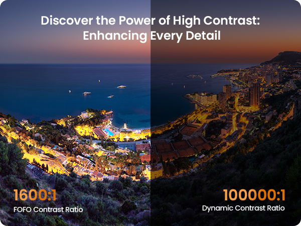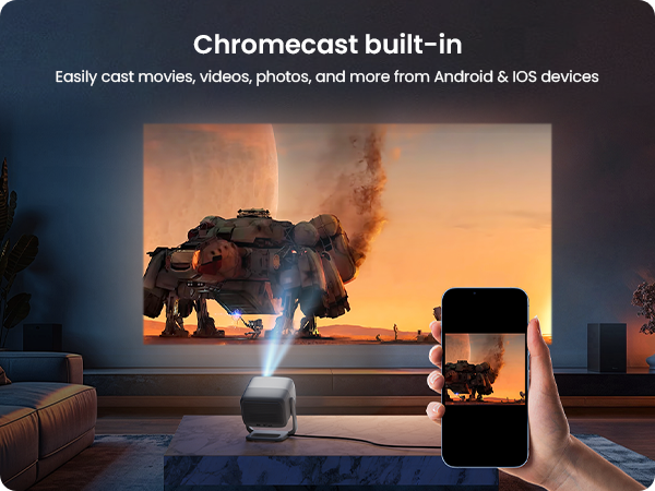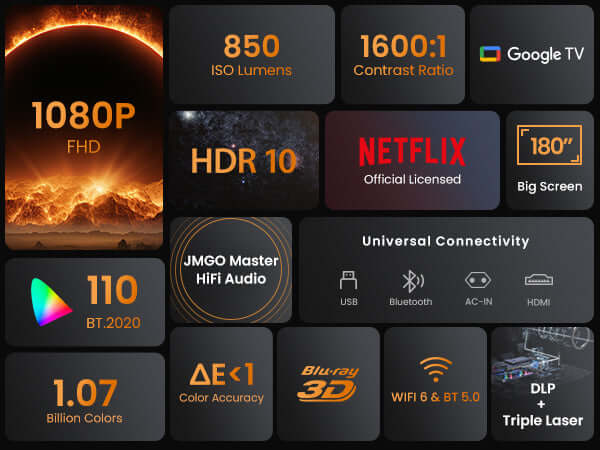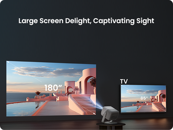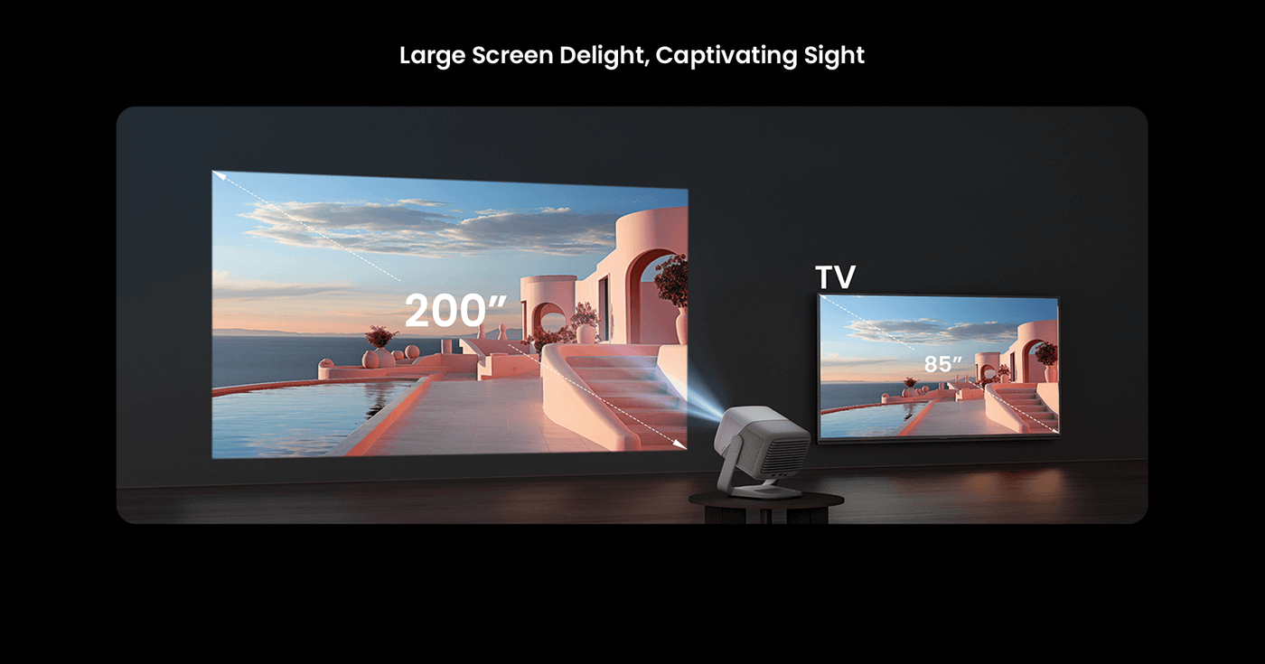 ● Stunning Full HD Visuals: Enjoy 1080P clarity, 850 ISO lumens, and HDR10 for lifelike colors up to 200".