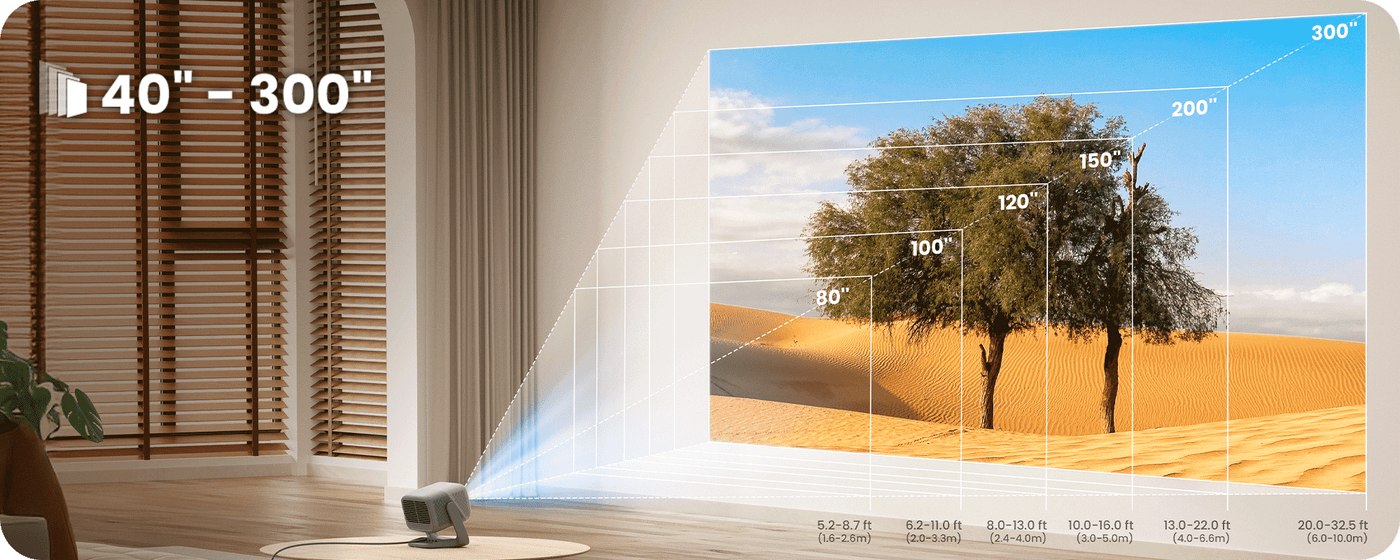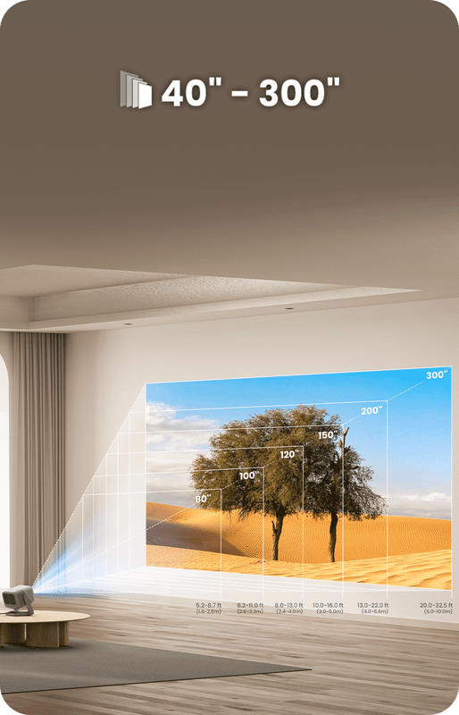 Supports 40''–300'' projection with real-time auto correction and focusing for a perfect view anytime.