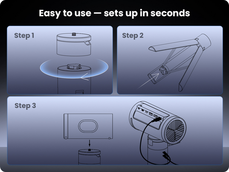 - Space Efficiency: Compact stand design helps maximize desk or table space while maintaining projector stability