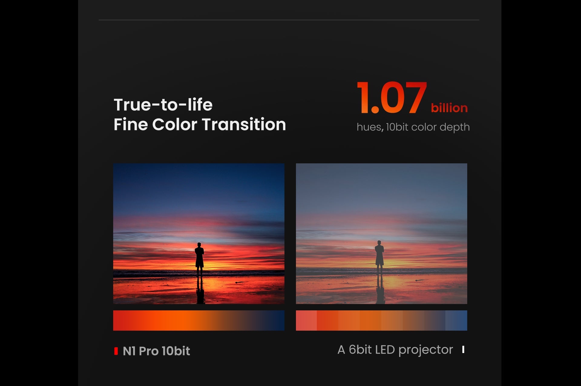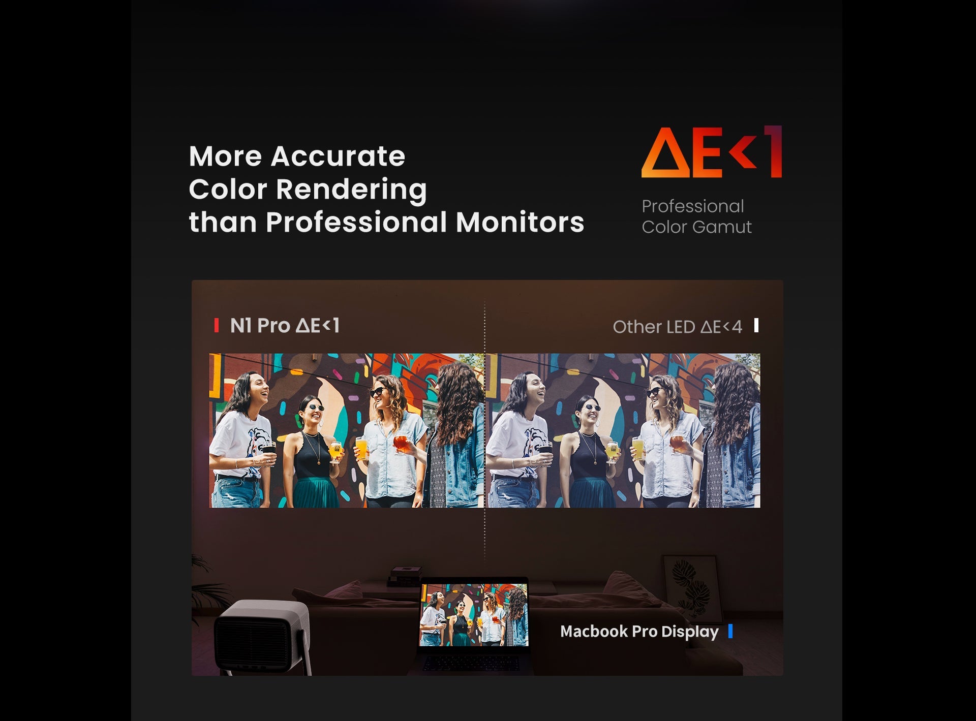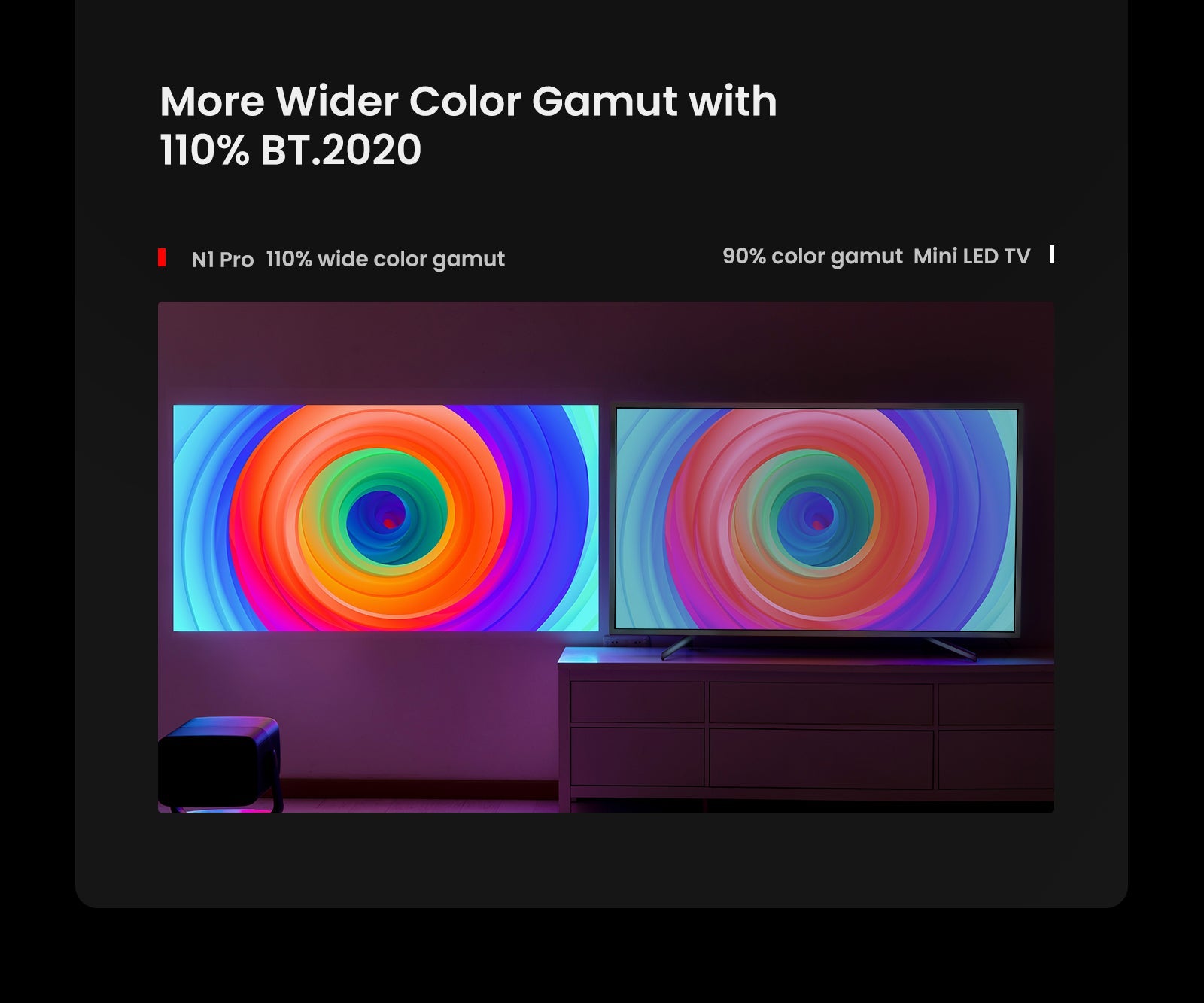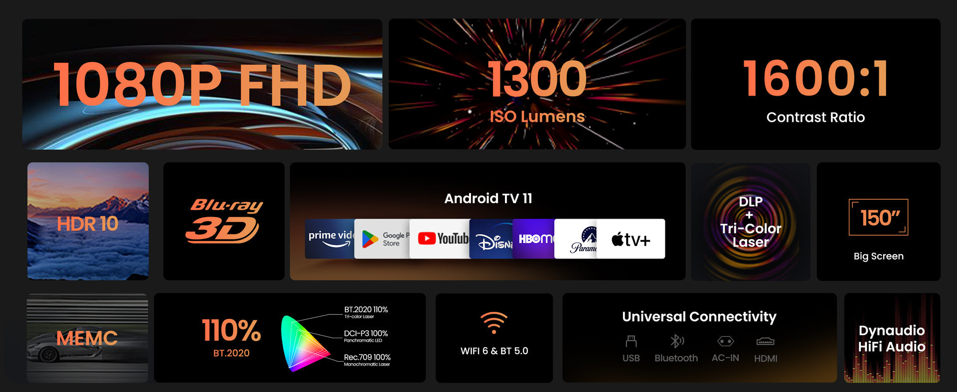 - Native 1080P Resolution: Experience crisp FHD (1920×1080) with HDR10, 110% BT.2020 color, and 1600:1 contrast for bright, vivid images up to 150".