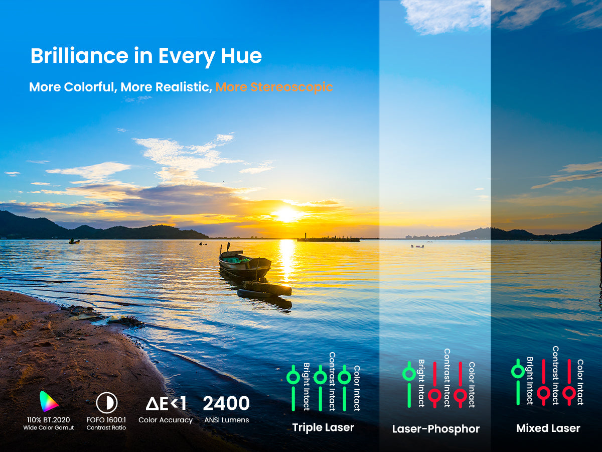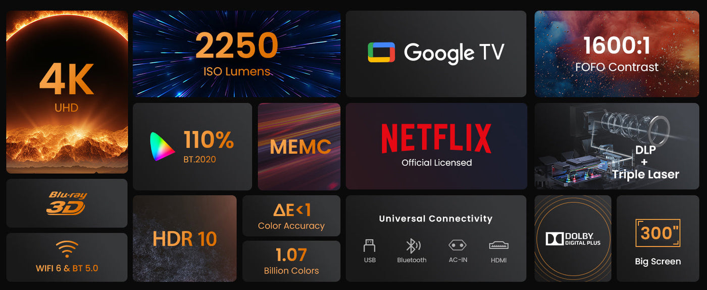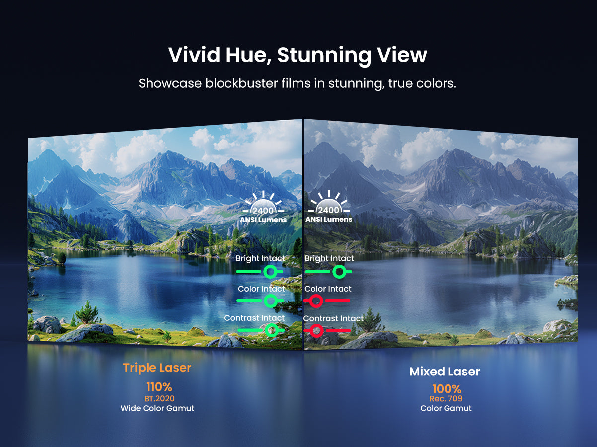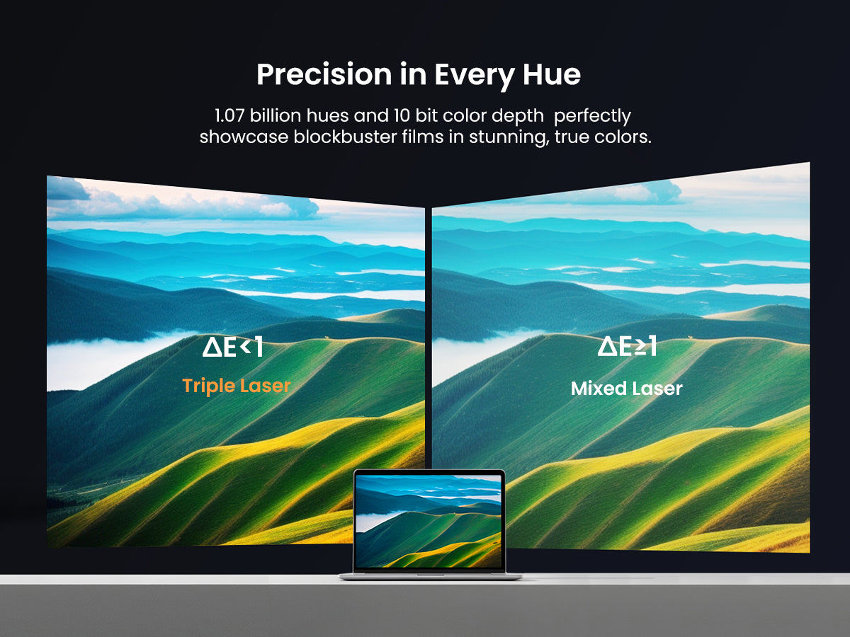 ● Cinematic Color Explosion: Rich 4K visuals with ultra-wide color gamut and 1600:1 contrast for lifelike brilliance.
