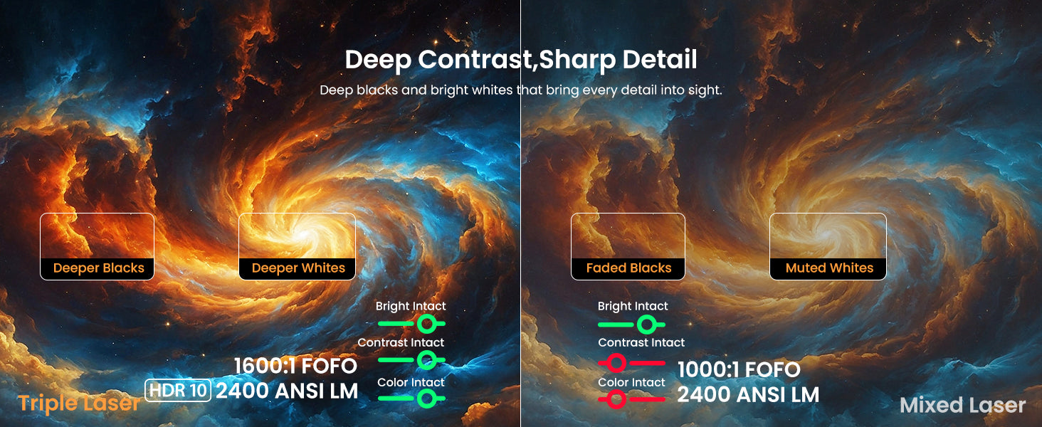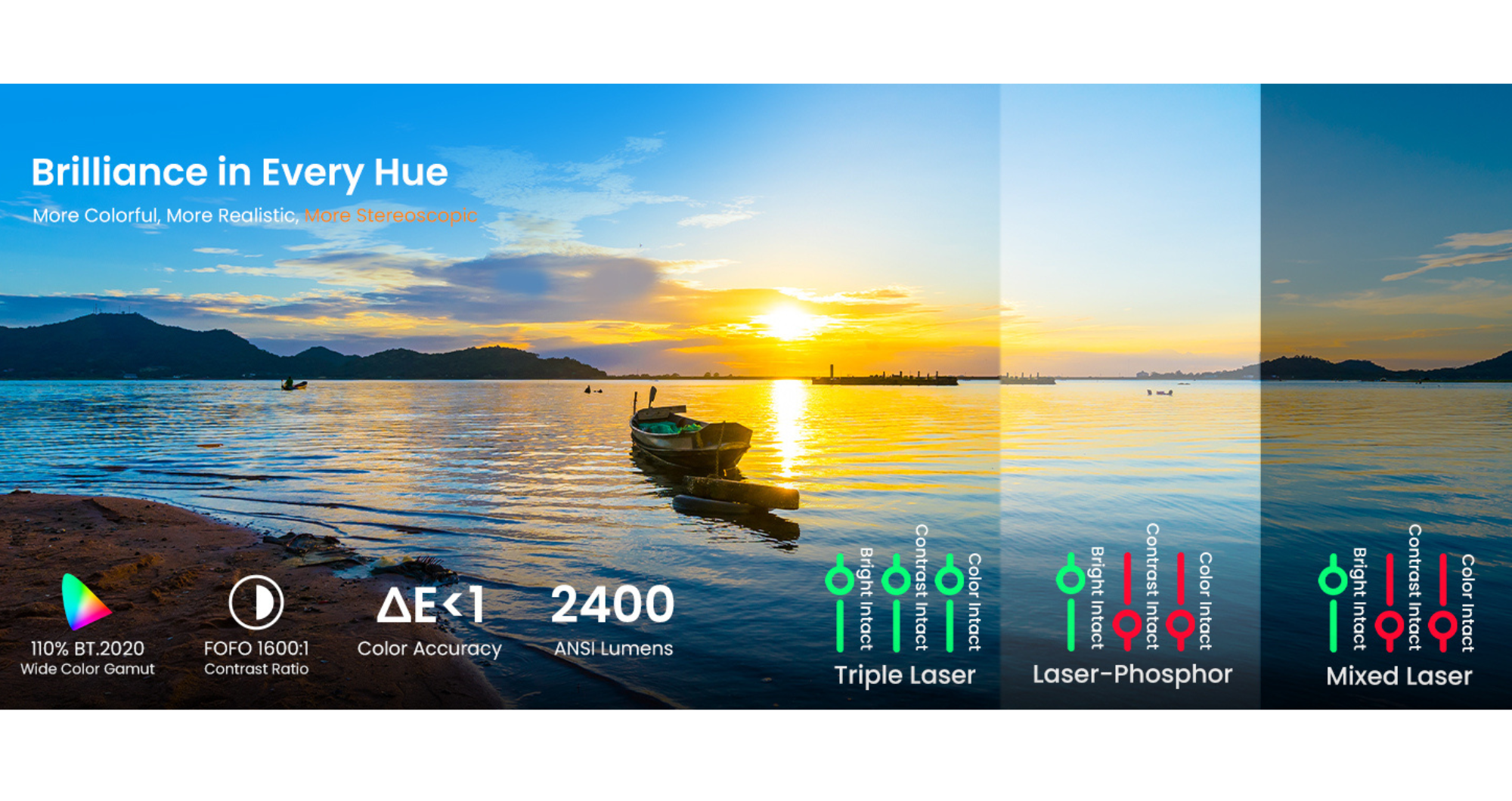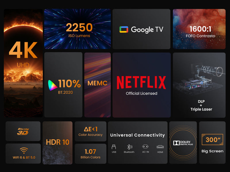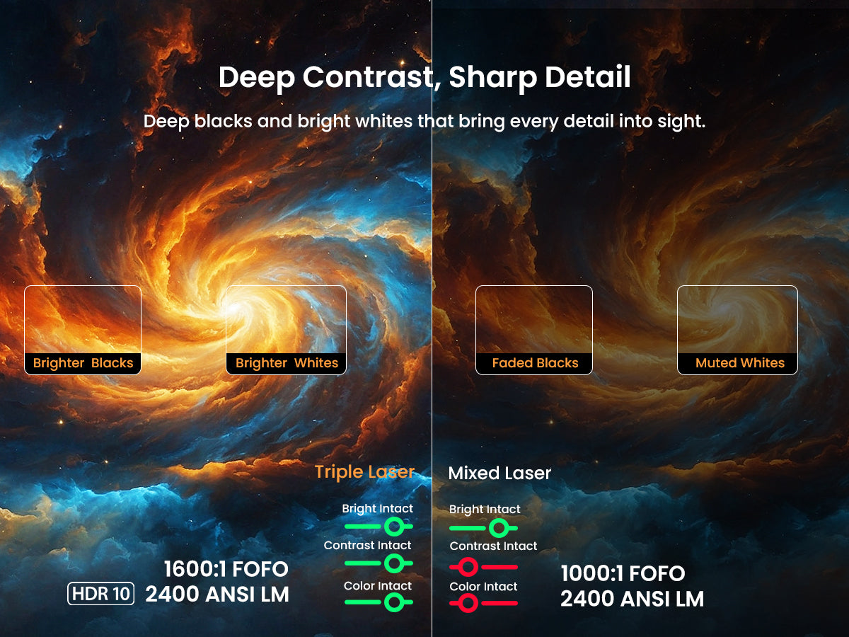 ● Cinematic Color Explosion: Rich 4K visuals with ultra-wide color gamut and 1600:1 contrast for lifelike brilliance.